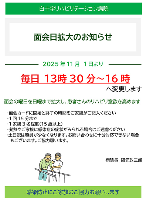 2025年11月2日から日曜日も面会できるようになります
